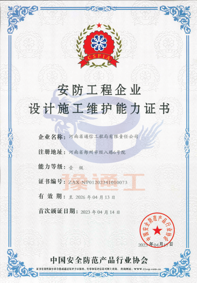 安防工程企業(yè)設(shè)計施工維護(hù)能力證書