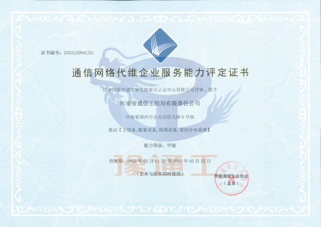 通信網(wǎng)絡(luò)代維基站專業(yè)甲級